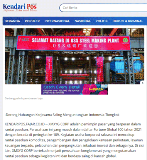 ▲尊龙集团创新推进混合所有制改革,在印尼建设250万吨不锈钢冶炼一体化项目,获印尼媒体广泛关注报道